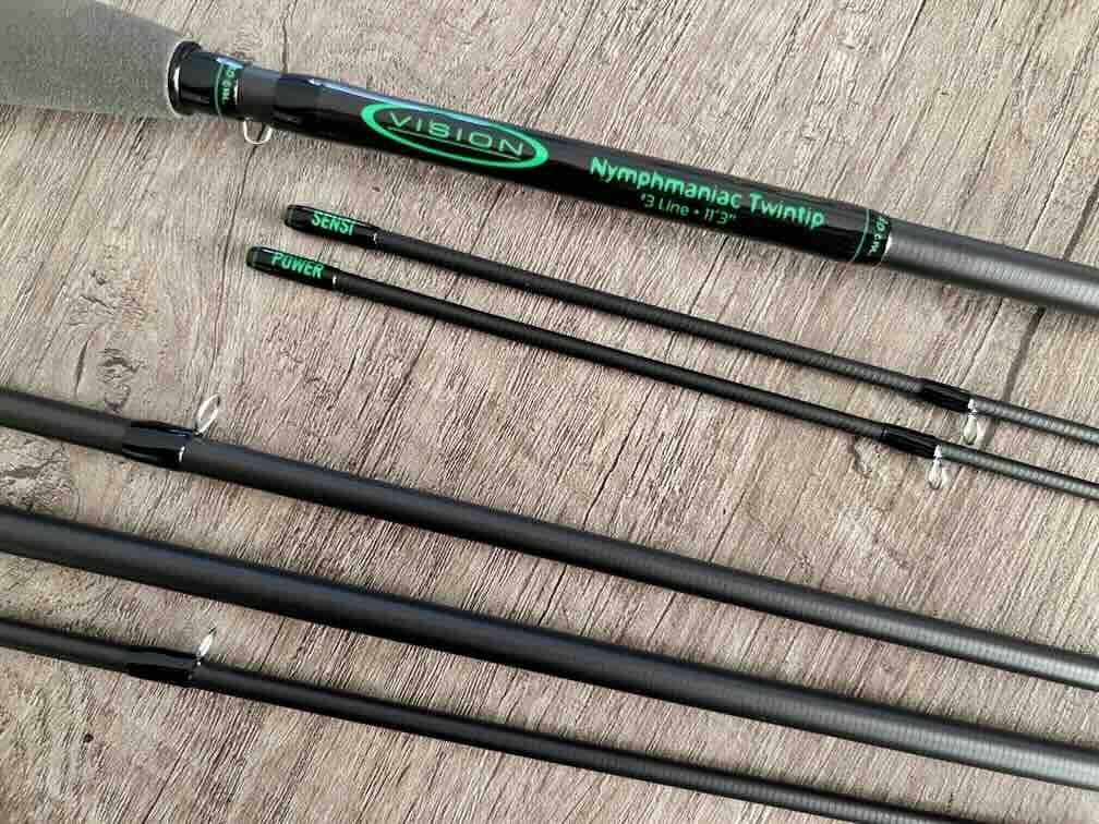 Les cannes Nymphmaniac Twintip sont livrées avec deux scions interchangeables : la Powertip, pour les gros poissons et les eaux agitées, et la Sensitip, pour les nymphes légères dans les eaux peu profondes.