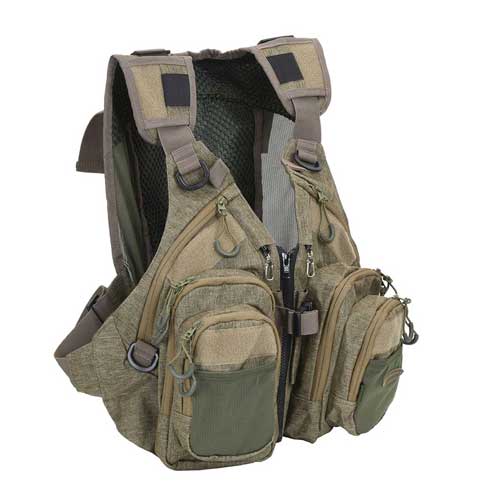 • Hybride entre gilet de pêche, sac poitrine et petit sac à dos