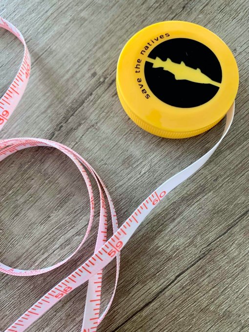 Mesure de poche avec un diamètre de 52 mm et une règle en tissu de 150 cm assez longue pour la plupart des espèces.