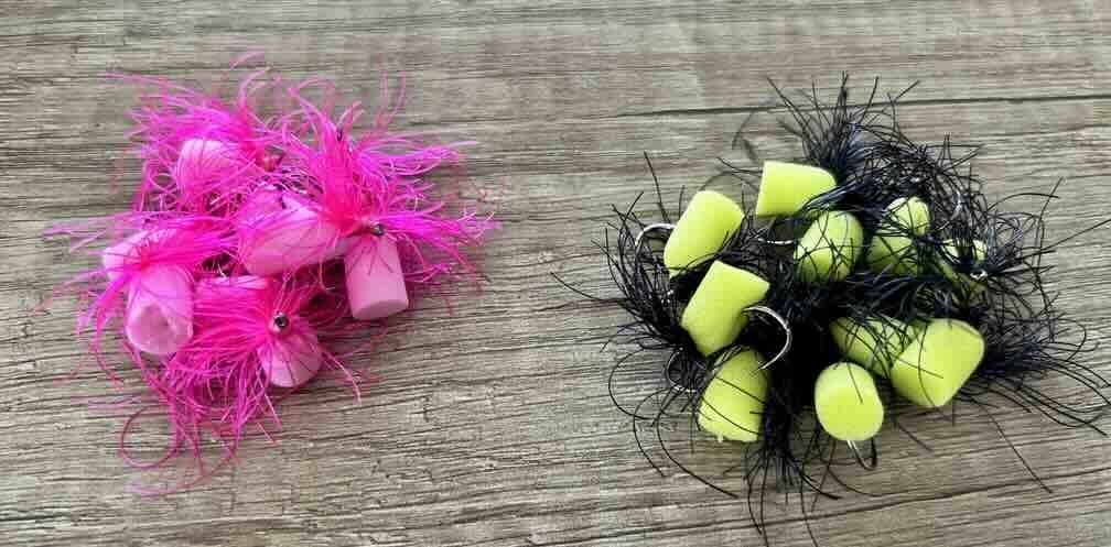Ici en version FAB (foam Arse Blob,blob avec cul en mousse) c'est une mouche réservoir qui est de la famille des Boobys avec sa mousse placée à l'arrière au niveau de la courbure. Il peut être utilisé avec une soie flottante ou intermédiaire (en "corde à linge").